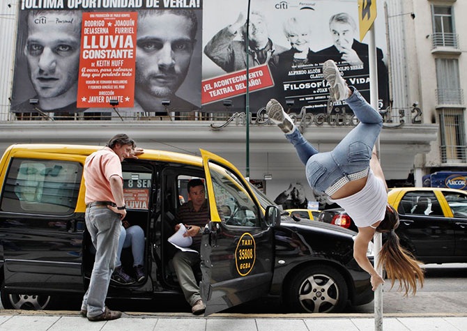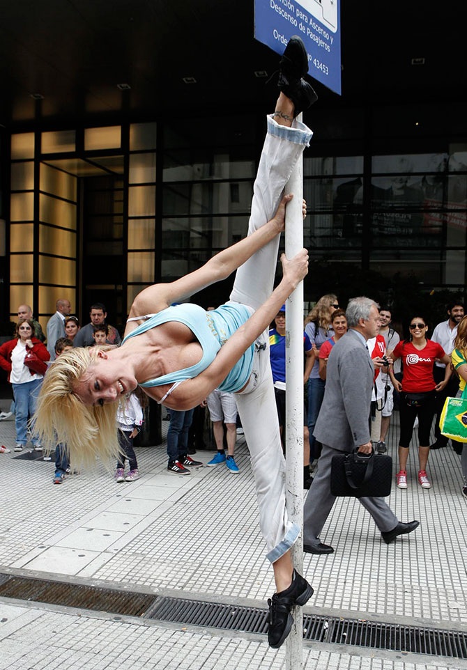 В Буэнос-Айресе, Аргентина, участники спортивно-танцевального конкурса Miss Pole Dance South America 2012 устроили незабываемое уличное представление для местных жителей. Танцоры со всех стран Южной Америки демонстрировали разнообразные трюки, используя вместо пилона дорожные указатели, фонари, рекламные щиты, металлические заборы и даже перила.