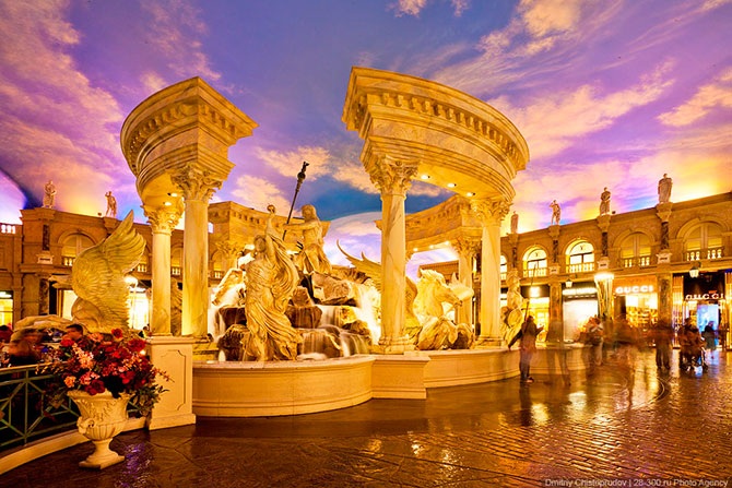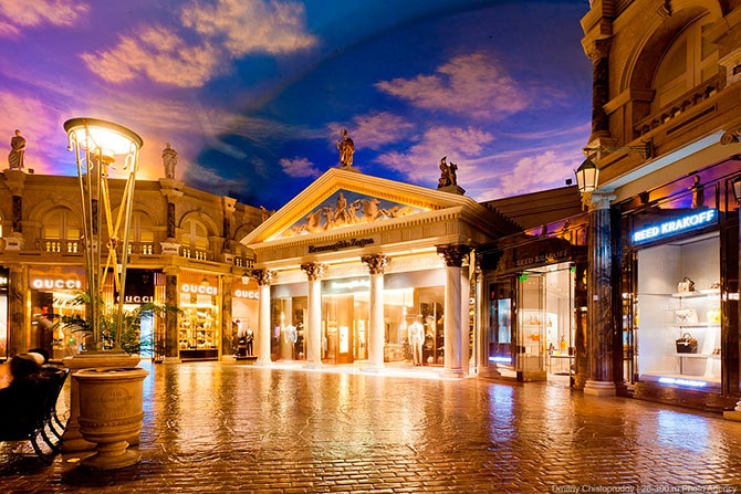 Внутри каждого отеля есть свои улицы, напоминающие улицы городов, в стиле которых выполнен тот или иной отель. На этих улицах хоть нет рекламы, но здесь все искусственное, даже небо.