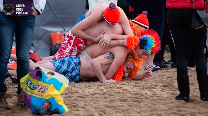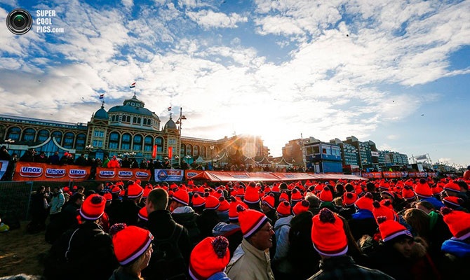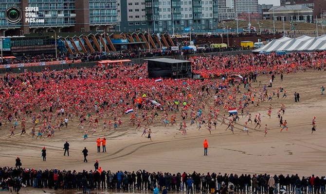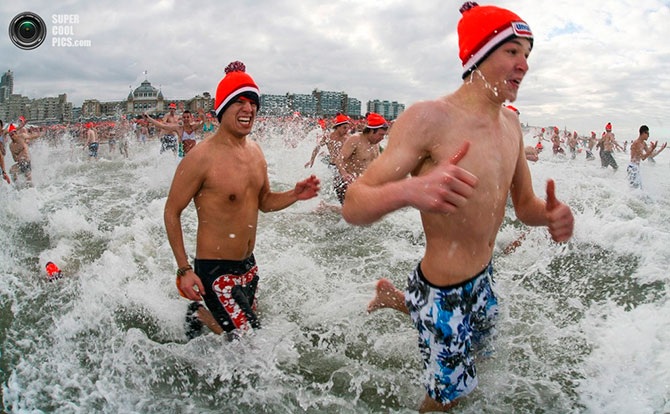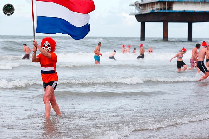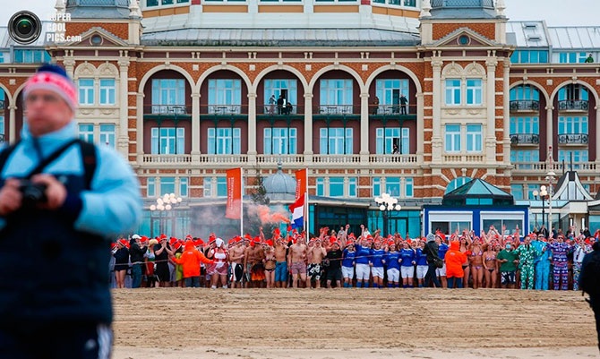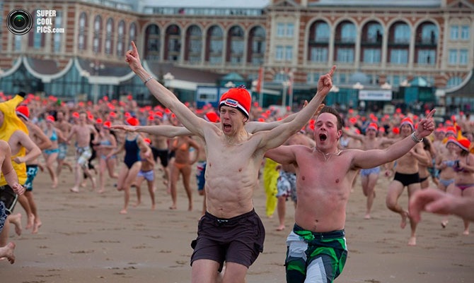 В Схевенингене, Нидерланды, состоялось традиционное «посленовогоднее» купание в Северном море. Это мероприятие является одним из самых массовых «купаний белого медведя», как оно называется в англоязычных странах, — понежиться в холодной воде приходит масса голландцев. Суть сводится к сбору средств на благотворительность.
