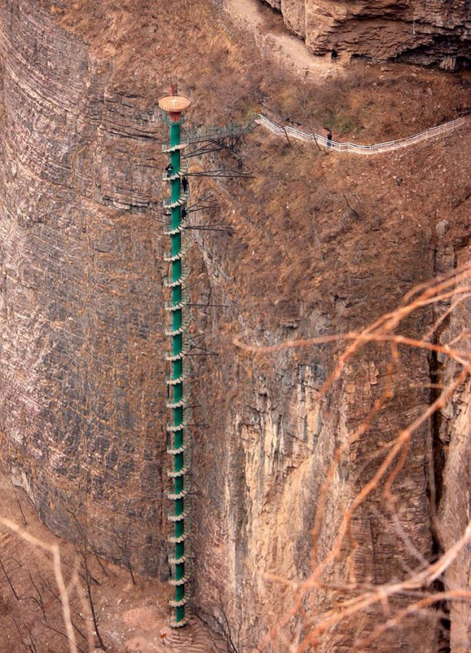 Лестница высотой 91,5 метра установлена вдоль склона горы Тяйхань в Линчжоу, Китай. Она предлагает острые ощущения альпинизма без всякой опасности. Экскурсия вверх по лестнице не требует подготовки и дополнительного снаряжения. Здесь вы почувствуете на себе всю силу ветра, мимо будут пролетать птицы, а ступеньки будут поскрипывать. Это намного интереснее, чем подниматься на лифте. Однако, из-за проблем безопасности и здоровья, необходимо согласиться с рядом условий. Альпинисты должны быть младше 60 лет, и должны заполнить форму, подтверждающую, что у них нет проблем с сердцем или легкими.