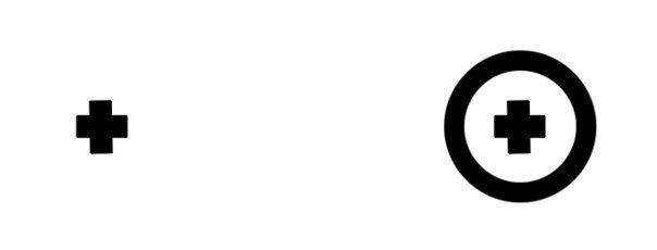 Чтобы наблюдать у себя слепое пятно, закройте правый глаз и левым глазом посмотрите на правый крестик, который обведён кружочком. Держите лицо и монитор вертикально. Не сводя взгляда с правого крестика, приближайте (или отдаляйте) лицо от монитора и одновременно следите за левым крестиком (не переводя на него взгляд). В определённый момент он исчезнет. Аналогичный опыт можно провести и с правым глазом. Этим способом можно также оценить приблизительный угловой размер слепого пятна.