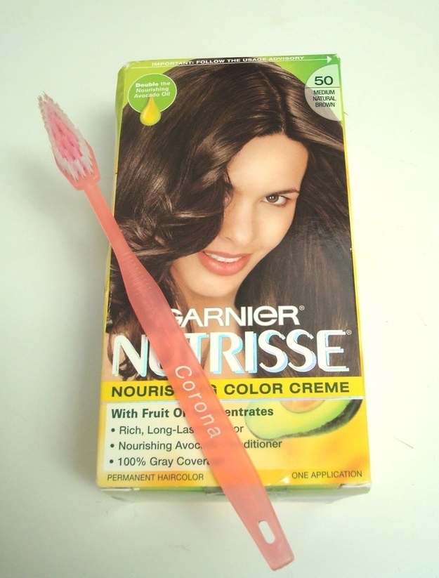 16. Аккуратно и эффективно покрасить корни волос можно с помощью зубной щетки.