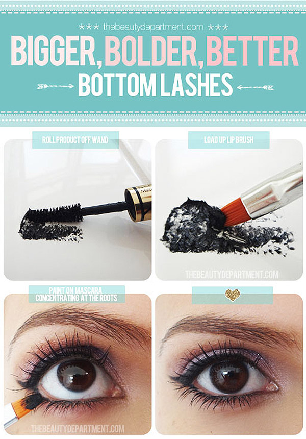 6. С помощью кисточки для губ намного легче и быстрее подкрасить нижние реснички тушью.