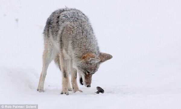 Койот нашел мышку в снегу и конечно же хотел ее съесть, но не тут то было, попробуй угонись за этой проворной мелюзгой.