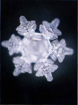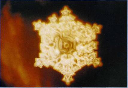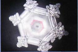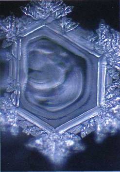 На следующих снимках показаны кристаллы, образованные водой, над которой молились; водой, которой показали изображение японской солнечной богини Аматэрасу*; и водой, которой показывали фотографии «кругов на полях» (примятых силой стеблей, образующих сложные, видимые только с большой высоты рисунки) и дельфинов; грунтовой водой, собранной до и после землетрясения.