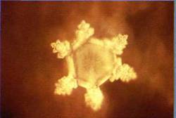 После землетрясенияГрунтовые воды непосредственно до и после землетрясения в префектуре Симанэ (Япония) и несколько позже в том же месте. Перед землетрясением никаких кристаллов не образовывалось: вода словно предсказывала катастрофу. После землетрясения способность воды образовывать кристаллы постепенно восстановилась.