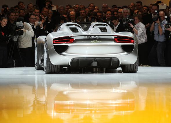 Автомобиль Porsche 918 Spyder представлен на автосалоне в Женеве. (Uli Deck/DPA/ZUMA Press)