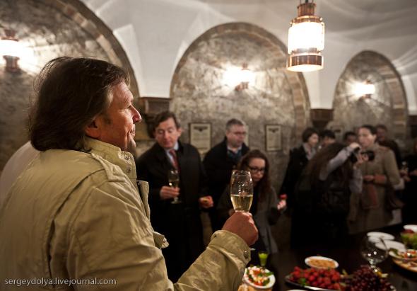 Прежде чем мы спустились в подвалы, нас угостили шампанским и фруктами. Борис Титов сказал приветственную речь: