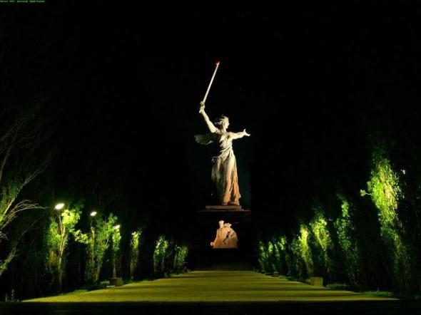 Величественная скульптура Родины-матери поднялась над курганом на 52 метра и видна со всех концов города.