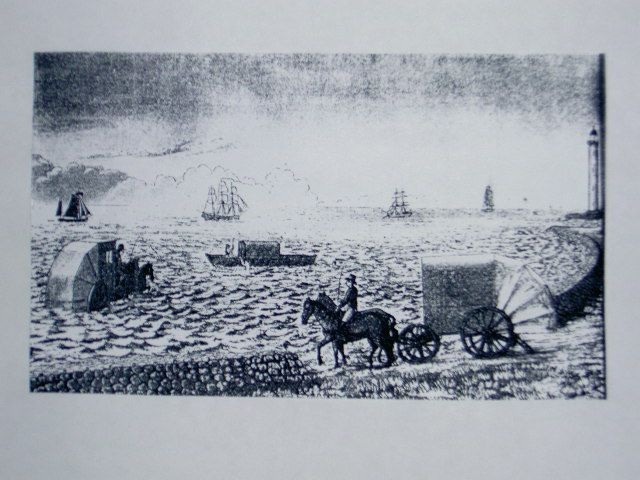 «fitted up a set of NEW MACHINES (wheeled bathing huts), with a careful man and horse to conduct them in and out of the water ».