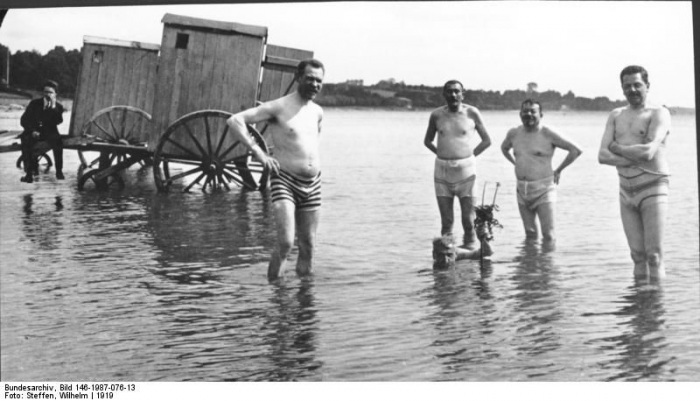 Несмотря на возрастающую популярность купаний, многие боялись и стеснялись плавать, в лучшем случае мочили ноги: