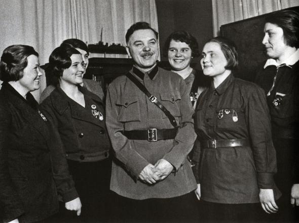 По мере приближения войны советские женщины на фотографиях всё чаще предстают в военной форме.