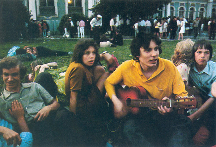 Белые ночи в Ленинграде. Группа студентов отмечает выпускной: