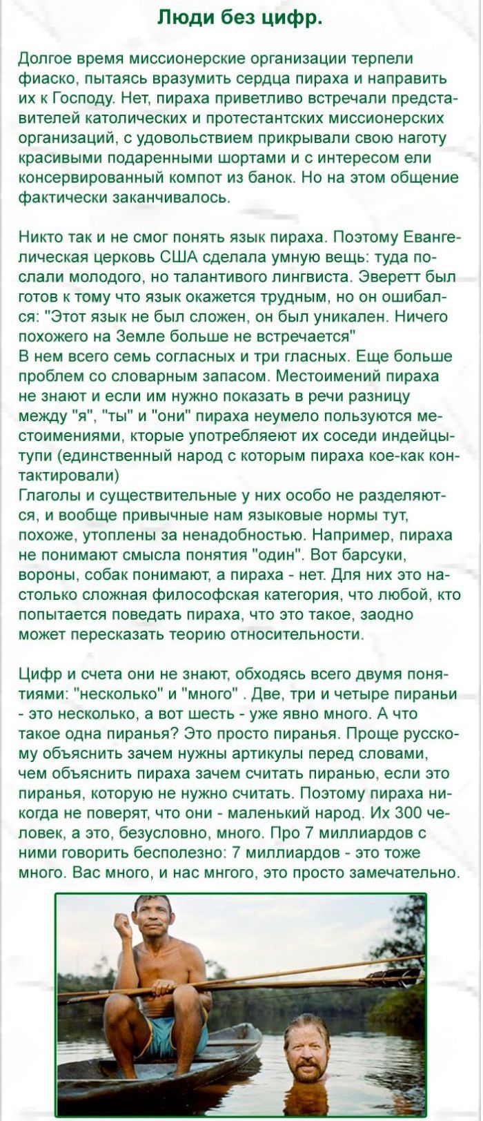"Индейцы Пираха - самые счастливые люди в мире"