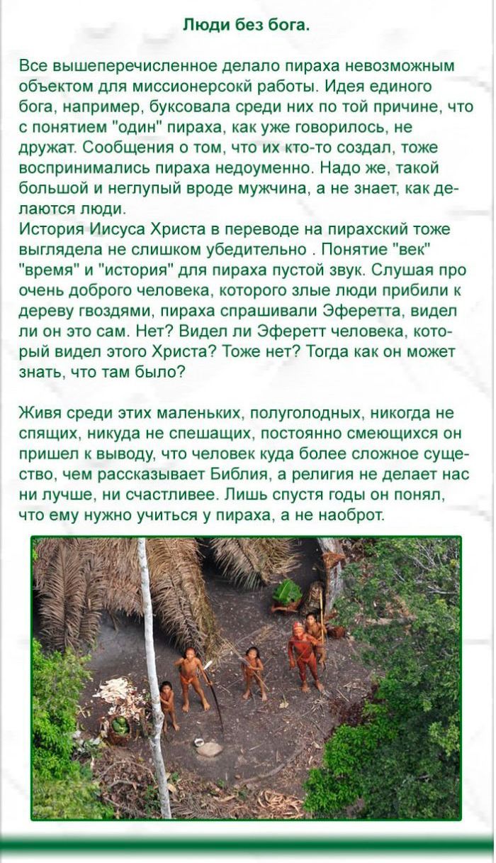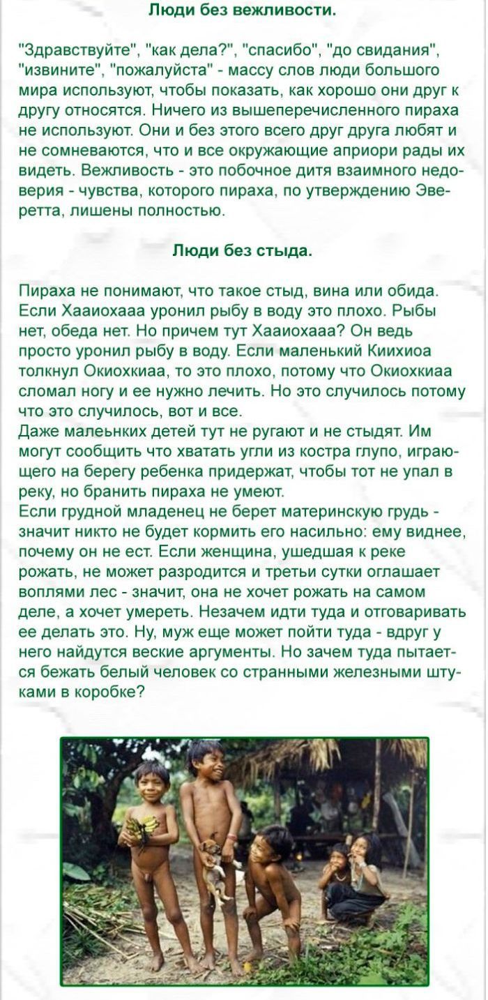 Еще интересные статьи на тему "Индейцы Пираха - самые счастливые люди в мире":