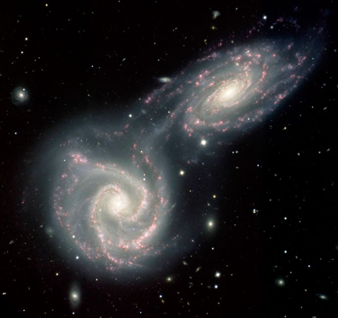 Галактика Андромеды и наша Галактика приближаются друг к другу со скоростью 100-140 км/с.