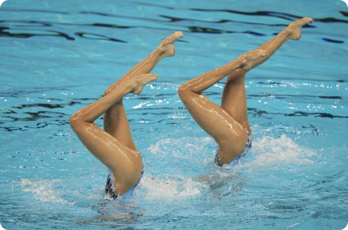18. Мэри Киллман и Лиса Уоллэс из сборной США во время выступления на соревновании по синхронному плаванию дуэтом. (Reuters/David Gray)
