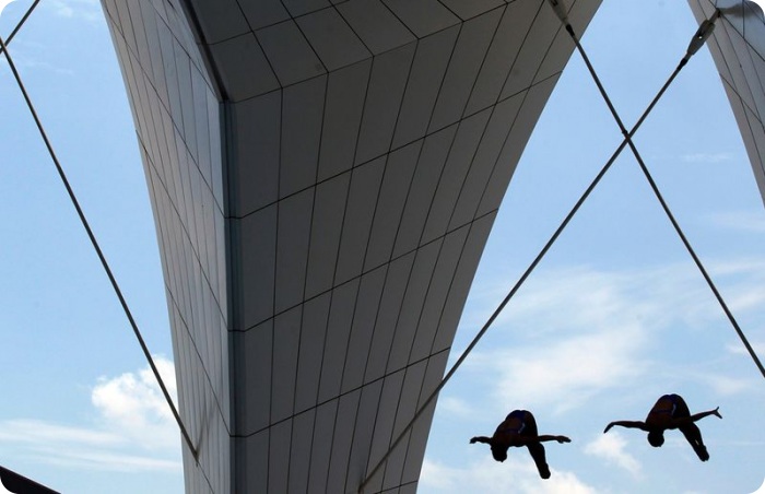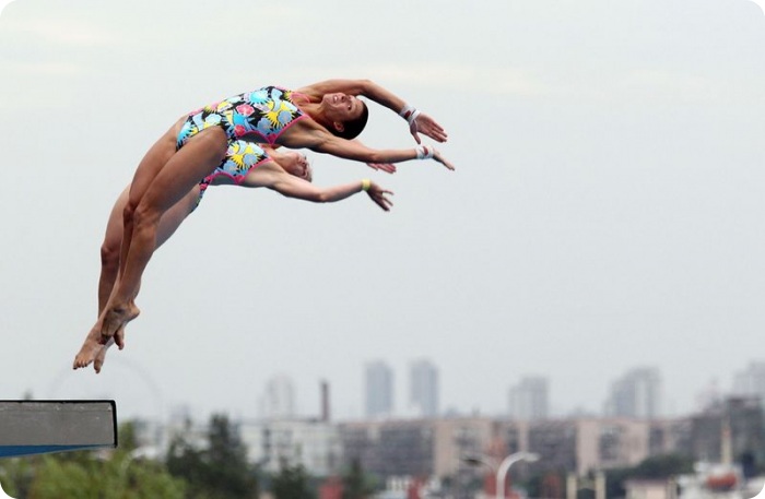 В Шанхае до 31 июля проходит 14-ый Чемпионат мира по плаванию. Пловцы и ныряльщики из 74 стран участвуют в соревнованиях по плаванию, прыжкам с трамплина, водному поло и многих другим. Соревнования по синхронному плаванию – четыре по плаванию и два по синхронным прыжкам с трамплина – особенно живописны и красивы: участники четко повторяют движения тела товарищей, прыгая с трамплина или находясь в воде. Фотографы в Шанхае расположили свои камеры над и под водой, чтобы поймать наиболее красивые и зрелищные фотографии чемпионата.