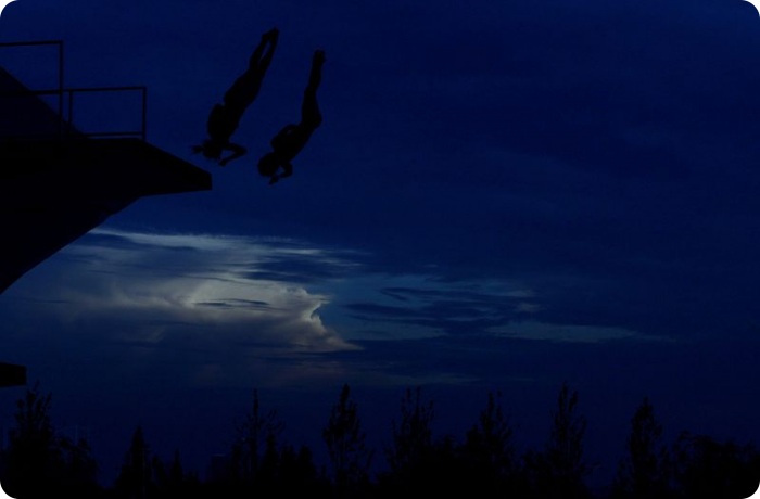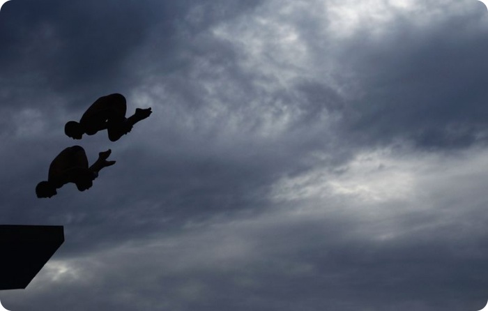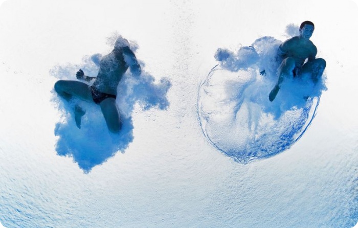 13. Еще одно фантастическое фото прыгунов в финале соревнования по синхронному прыжку с 3-метрового трамплина. (Ezra Shaw/Getty Images)