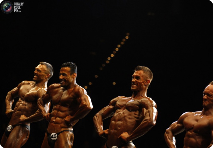 6. Участники Европейского чемпионата по мужскому бодибилдингу, классическому бодибилдингу и культуризму демонстрируют развитость своей мускулатуры. Для этого каждый спортсмен должен принять ряд обязательных поз, напрягая определенные группы мышц.