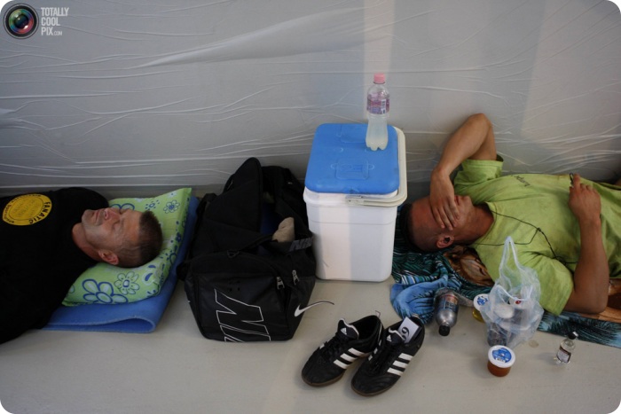 10. Участник соревнований перед зеркалом наводит последний лоск.