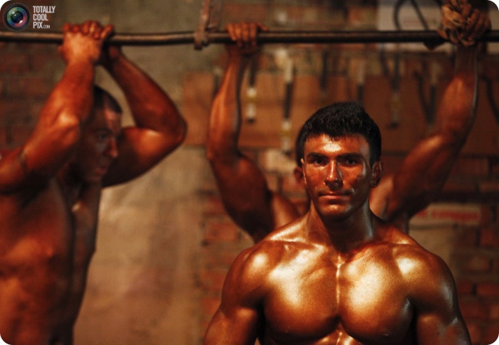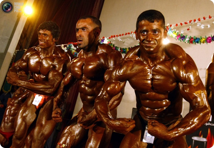 27. Ежегодный конкурс по бодибилдингу, проводимый Национальным олимпийским комитетом Афганистана. 12 мая 2010 года этот конкурс проводился в кинотеатре Арейюб в западной части Кабула. В центре снимка – победитель чемпионата Мохаммад Ариф Сахи.