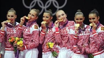 22. Художественная гимнастика, Олеся Белугина, Ольга Глацких, Татьяна Курбакова, Наталья Лаврова, Елена Мурзина и Елена Посевина.