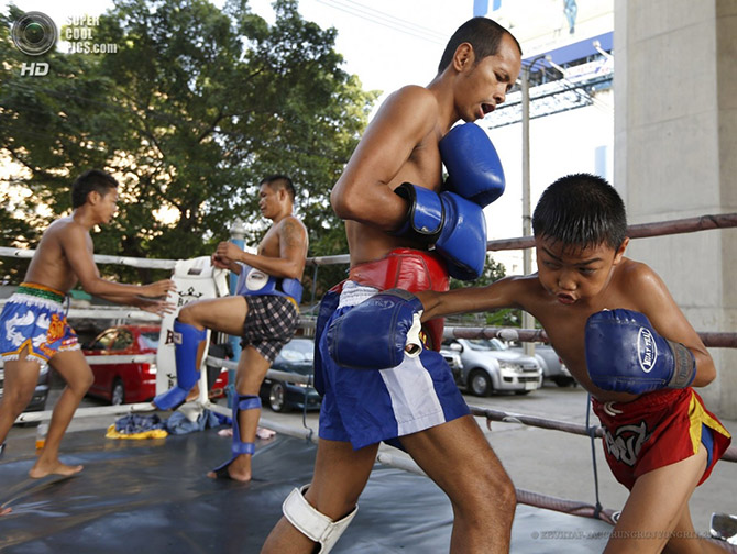 Таиланд. Бангкок. 20 марта. Девятилетний Танапонг «Рэмбо» Унпуанг разогревается перед спаррингом.