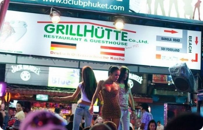 На весь мир прославлено такое злачное место Таиланда как патонгская BangLa Road – улица «красных фонарей» с примыкающими к ним кварталами из заведений питейно-развлекательного типа. Днем на улицах торгуют сувенирами, а с наступлением ночи – эротическими фантазиями. Хочешь – смотри, хочешь – заказывай материализацию своих самых сокровенных грез. Вопрос физического воплощения мечты в реальность напрямую зависит от степени наполненности кошелька. Кредитные карты не принимаются.