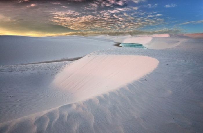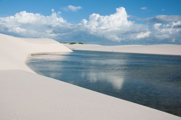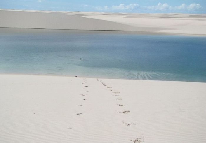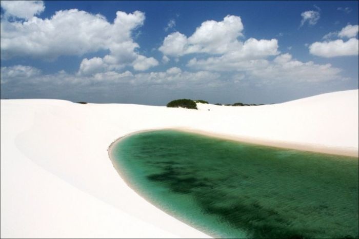 Если посмотреть на парк с вертолета, возникает ощущение, что смотришь на большое одеяло, которое движется по направлению ветра. Пески и лагуны постоянно перемещаются под воздействием сильных ветров, поэтому в Ленсойcе каждое мгновение неповторимо, каждый пейзаж уникален и недолговечен. Кроме белоснежных дюн и затерянных лагун, на территории Национального парка Ленсойс Мараньенсес произрастают мангровые заросли, в дебрях которых обитают олени, золотистые зайцы и др. животные, в поймах рек и озер – крабы и кайманы. Лишь в этих районах почвы достаточно плодородны для таких гигантов, как мангровые деревья, высота которых достигает 12 метров. На территории национального парка также находится несколько поселений, жители которых в дождливый сезон занимаются рыбной ловлей, а в сухой – скотоводством.