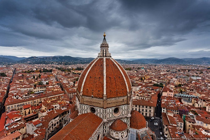 Вид с кампанилы Джотто на купол собора Санта-Мария-дель-Фьоре. Все дни стояла волшебная погода, и только за 3 часа до поезда прилетели тучки.