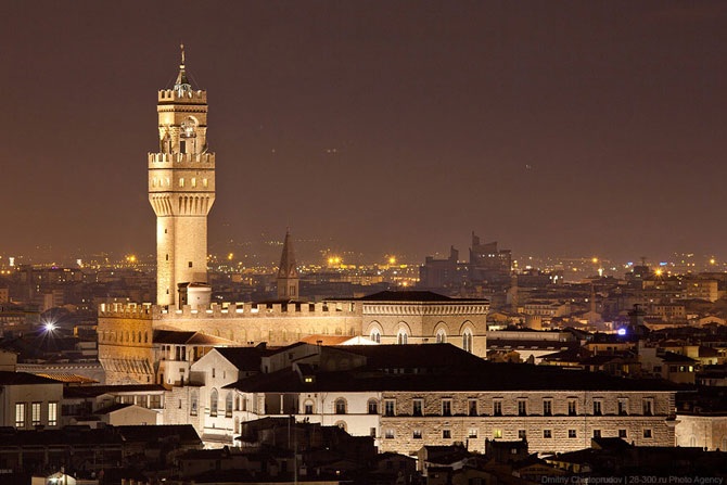 Палаццо Веккьо. Oдно из наиболее известных строений Флоренции, её символ и один из символов Италии. Сейчас дворец служит ратушей. Также в недрах «Старого Дворца» расположена библиотека. Над палаццо возвышается башня Арнольфо, высотой 94 метра.