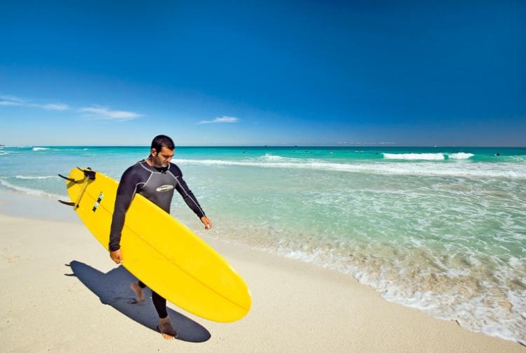 Атлантика для начинающего серфера гораздо приветливее Тихоокеанского побережья, а тут еще и аквамариновая лагуна. Волны, которых достаточно для того, чтобы прокатиться, поднимаются часто и лишь в сезон ураганов (летом и не каждый год) достигают угрожающих размеров. Серфят здесь в районе 1–3‑й улиц, с веслом и без весла. Инструктор нужен обязательно. Не зная азов и неправильно подобрав доску, вы наставите больше синяков. Пункты проката (с инструкторами) сосредоточены в районе тех же 1–3-й улиц.