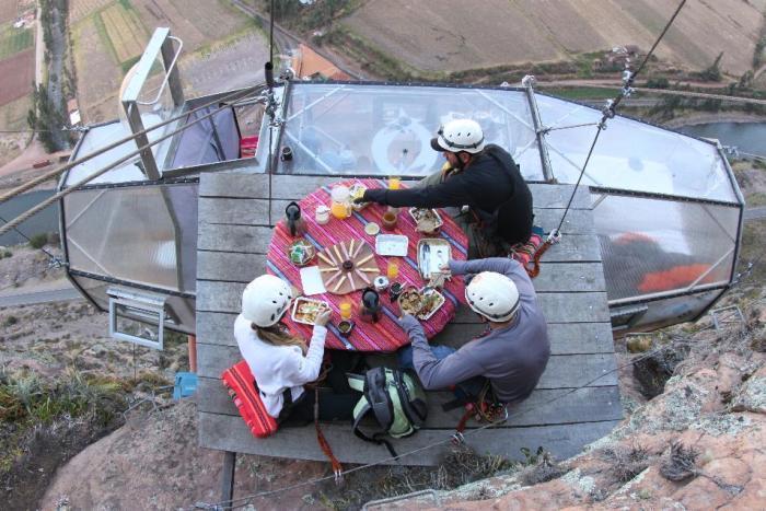 Внутри капсулы находится кровать, лампа и санузел. Наверху расположена небольшая терраса для завтраков на открытом воздухе. Отель очень популярен среди скалолазов-любителей и влюбленных пар.