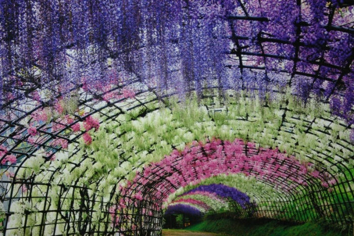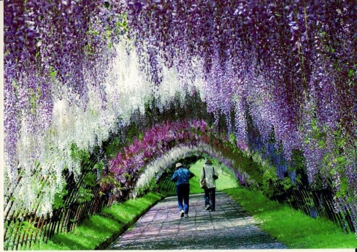 Японский городок Китакюшу, что в 4-х часах езды от Токио, известен своим садом цветов Кавати Фудзи (Kawachi Fuji Garden), одной из главных достопримечательностей которого является Тоннель Вистерия (Wisteria Tunnel).