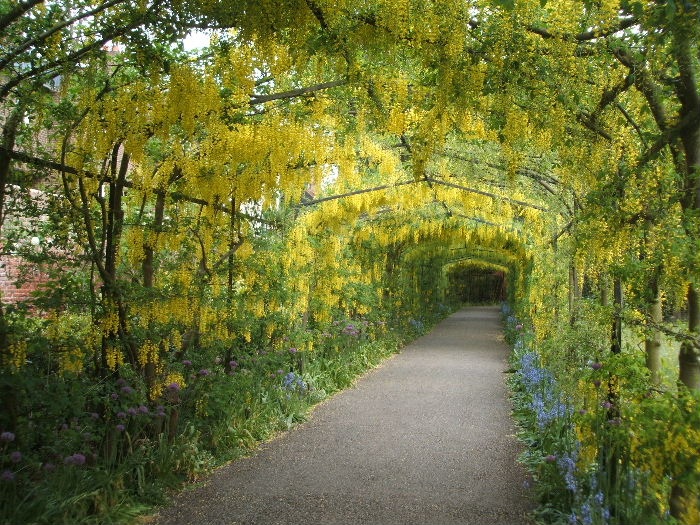 Чтобы увидеть сад в полном цвету, надо приезжать сюда ближе к середине мая. Не каждый год глицинии цветут так пышно, но даже при слабом разрастании лиан можно получить очень красивые фотоснимки этого чудесного сада.