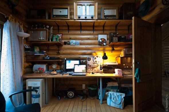 Подмосковная дача. Несколько совсем не выглядящих старыми магнитофонов невиданных моделей, крутя катушки пленок, подрагивают стрелками индикаторов записи. Разнообразные проигрыватели ждут свои виниловые пластинки, ноутбуки светят экранами, а где-то в центре Москвы установленный на балконе компьютер раздает шесть терабайт онлайн-вещания в месяц. По российским и зарубежным законам мы находимся в самом сердце цифрового пиратсва — студии «Старого радио», к которой еще ни один автор произведений не предъявил претензий, потому что ее создатель, Юрий Иванович Метёлкин, нарушая авторские права, выполняет великую миссию сохранения нашего культурного наследия.
