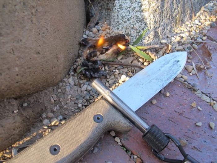 Берём пустой пластиковый аппликатор от тампона, раздуваем угли на куске бревна. Выжигаем подходящего размера ёмкость. У автора ушло около 30 минут на то, чтобы соорудить контейнер, вмещающий 2 чашки воды.