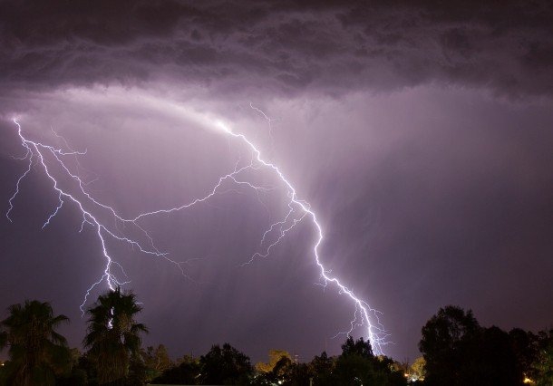 Если вы попали в грозу, не укрывайтесь под деревом или каким-либо высоким строением. Они привлекают молнии. Вместо этого поищите место в углублении или внутри подвала.