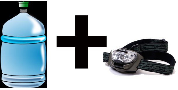 Что делать, если произошло крупномасштабное отключение электроэнергии, а вам нужно освещение? Возьмите налобный фонарь и пристегните его к огромной пластиковой бутылке воды. Вода будет рассеивать свет, и это приспособление станет отличным источником общего освещения.