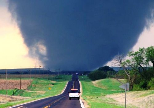 Если вы заметили приближающийся торнадо, не пытайтесь от него уехать. Вместо этого остановитесь и внимательно присмотритесь. Если вы просчитали траекторию, по которой движется торнадо – поезжайте в противоположную сторону.