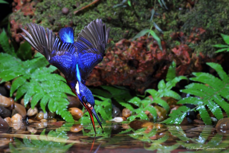 Фантастически редкие кадры удалось сделать фотографу из Таиланда Philphat Suwanmon. Он снял рыбалку голубого зимородка. Около двух лет он пытался выследить охотящихся птиц и ему улыбнулась удача. На одном из болот он нашел пару зимородков, самца и самку.