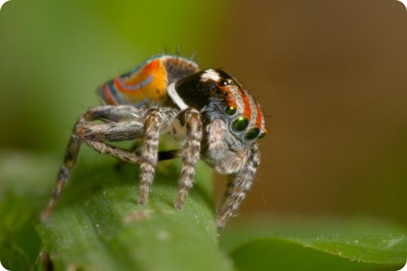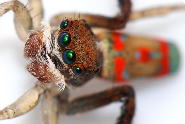 Павлиний паук обладает отличным зрением, которое позволяет ему увидеть добычу на расстоянии в 20 см.
