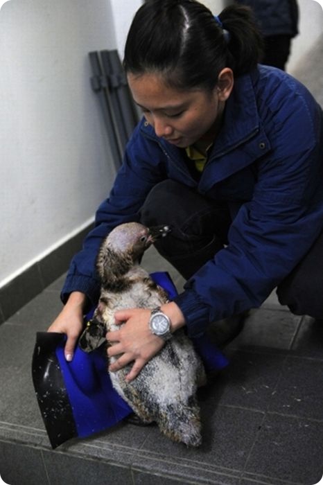 Специалисты разработали для 10-летнего Гумбольдта специальный гидрокостюм, имитирующий естественное оперение пингвина. Костюм не только сохраняет тепло, но и способствует росту новых перьев, предохраняя тело птицы от линьки.
