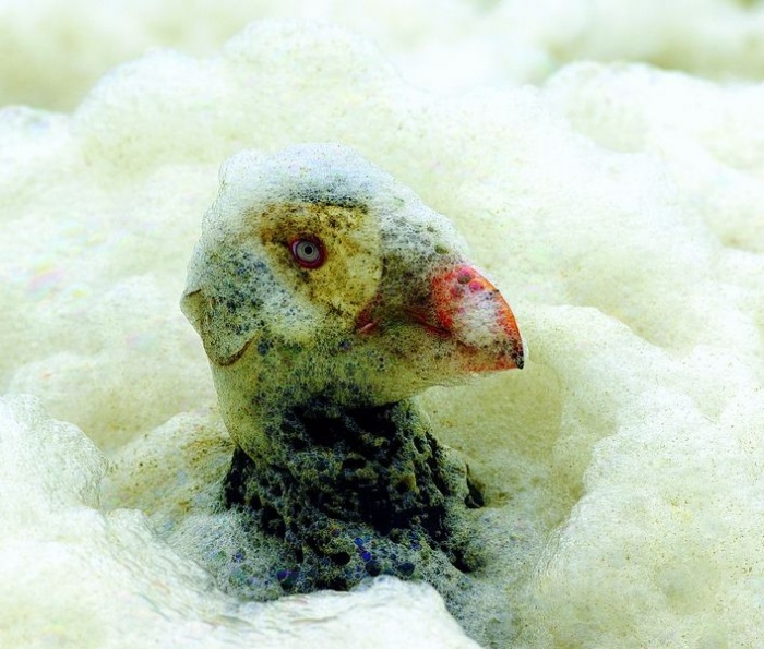 При сильном продолжительном прибое острова окружает широкая полоса морской пены, насыщенной зелеными микроводорослями которыми питаются птицы.
