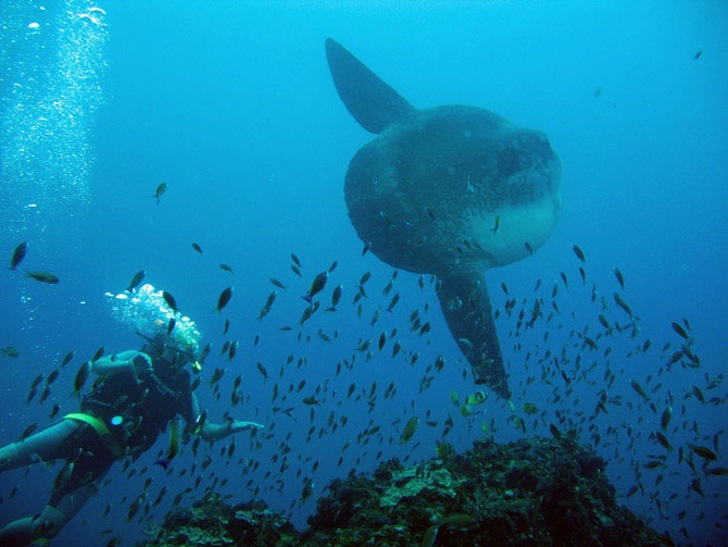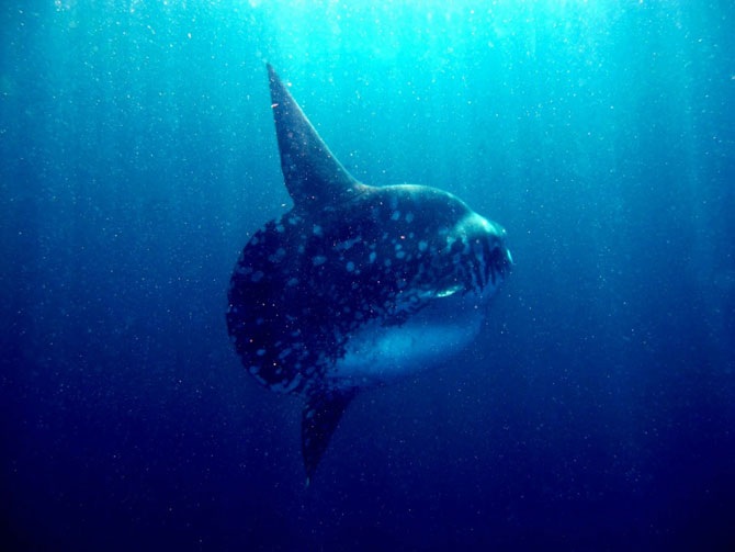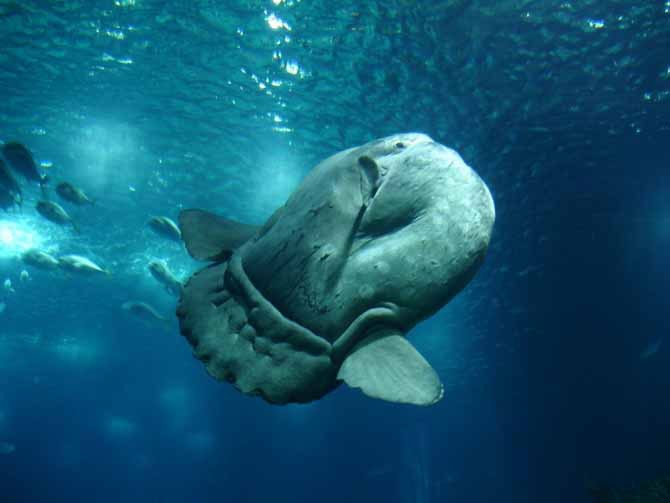 Вид у данной рыбы достаточно необычный – ее сплющенное тело очень похоже на вытянутый диск. Хвост у нее короткий, а плавники соединены между собой. Ее кожа достаточно толстая и бугристая. В данное время никто не в состоянии ответить, отчего рыба-Луна так эволюционировала.