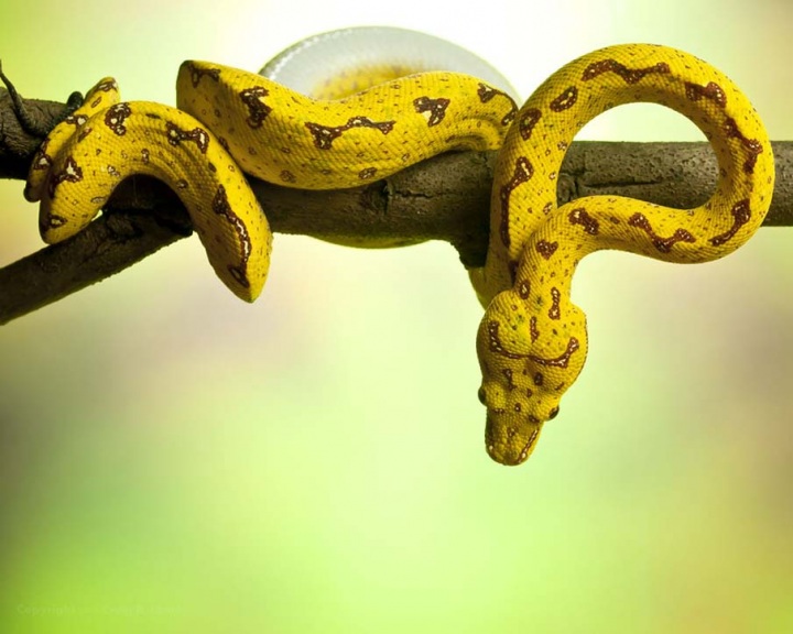 30. Детеныш древесного зеленого питона.