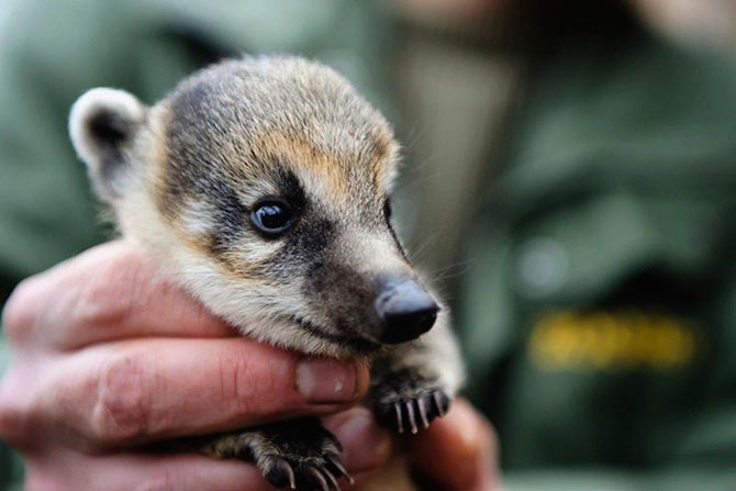 Очень застенчивый, но очень милый детеныш носухи.