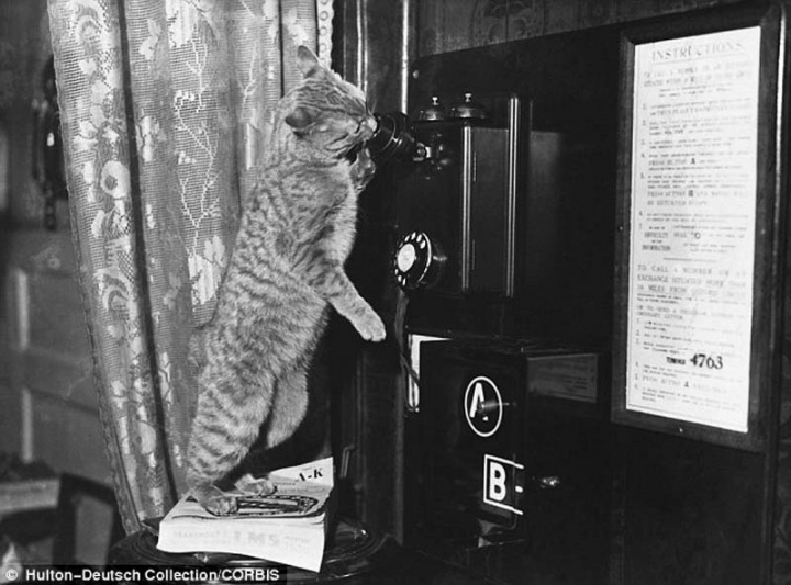 17. «Хэллоу, Китти!»: кот Джинджер использует старомодный телефон в Великобритании.