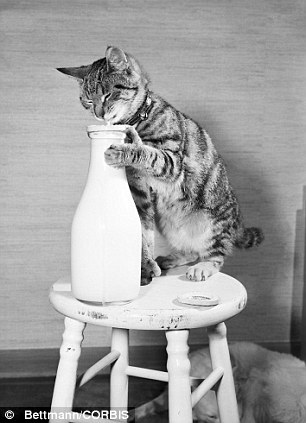 8. Проказники: 8-ми месячная кошка решила полакомиться молоком прямо из бутылки.